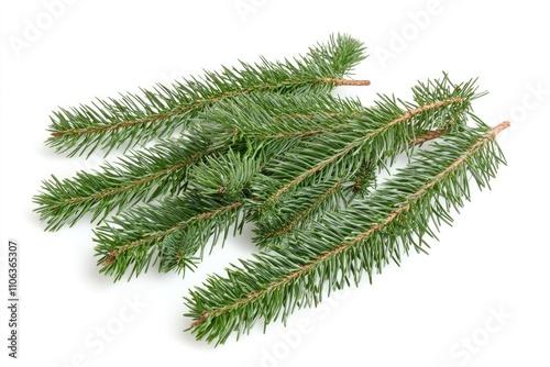 Close-up shot of a pine tree branch with needles and cones