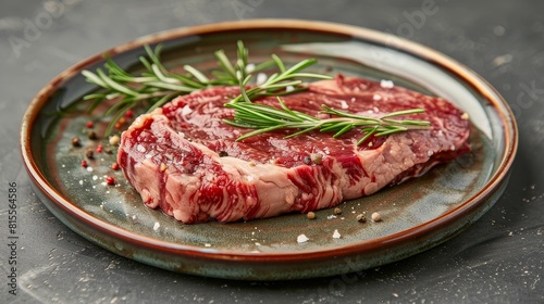 Close-up shot of a premium horse steak, decorated for an exquisite dining experience, focused and clear on an isolated background