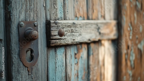 Close-up shot of a wooden door handle with intricate details