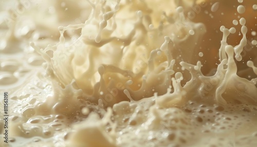 Closeup slow motion video of tamarind fibers and milk blending, focusing on the texture contrast against a neutral background