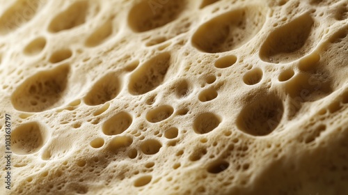 Close-up Texture of a Baked Good, Highlighting Pore Patterns and Light Reflection