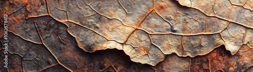 Close-up Texture of Overlapping Dried Leaves with Veins and Wrinkles