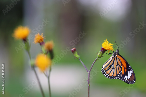 Closeup to butterfly on the flower (Common tiger butterfly)