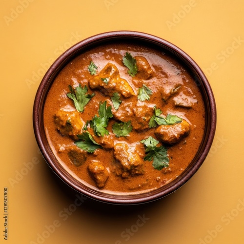 Closeup top view Paratha with curry on warm background