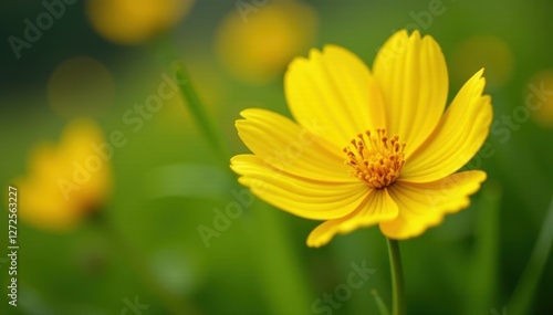 Close-up vibrant yellow buttercups, dew drops, sunlight, flower