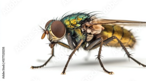 Close-up view of a colorful fly displaying intricate details of its body and wings