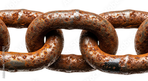 Close-up view of a rusty metal chain, showing the links and texture in detail.