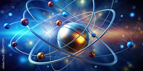 close-up view of an atom surrounded by orbiting electrons, atom, nucleus, electrons, orbit, science, microscopic