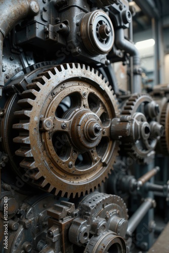 Close-Up View of Interlocking Gears and Cogs in an Industrial Machine Setting
