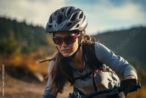 Close-Up: Woman Biking Through Summer Mountain Forest