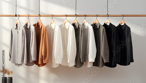 Clothes, shirts on hangers on floor created with Generative AI technology
