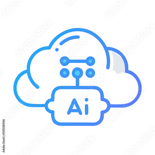 Cloud AI Assistant Icon – Artificial Intelligence and Cloud Computing Vector Illustration