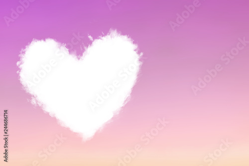 Cloud heart fly in violet pink sky.