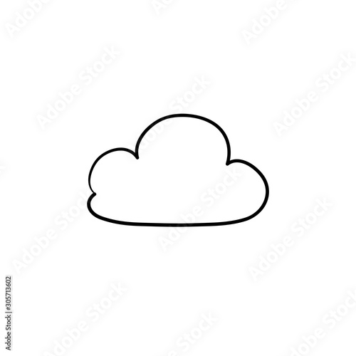 Cloud icon with hand drawn doodle cartoon style illustration isolated on white background