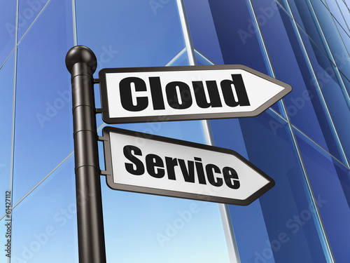 Cloud networking concept: sign Cloud Service on Building