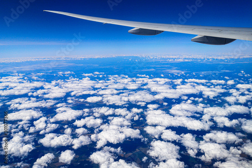Clouds above the ground view from an airplane as a background