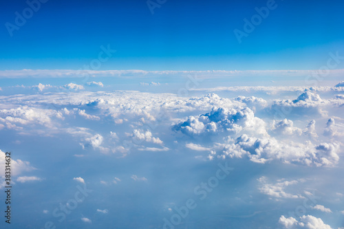 Clouds and sky as seen through window of an aircraft.