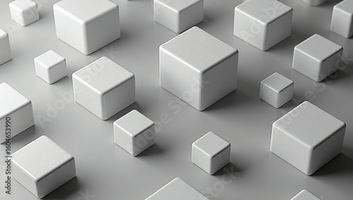 Cluster of 3D Cubes in Neutral Gray Tones
