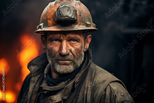 Coal miners wearing protective helmets work diligently deep extracting vital energy resources generative AI