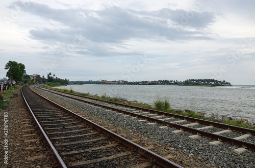 Coastal railway tracks along the ocean. The coast of Sri Lanka