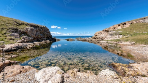 Coastal rock pool reflecting a clear sky (1)