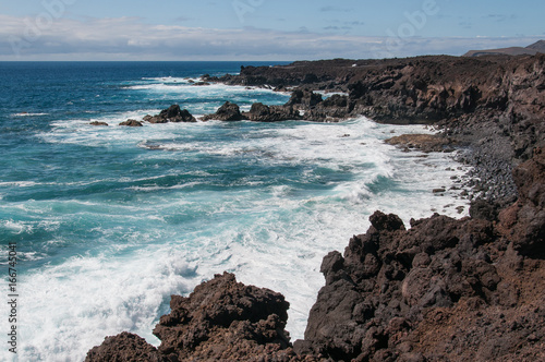 Coastline with oceanic waves, Punta del marques, Lanzarote, Canary Islands