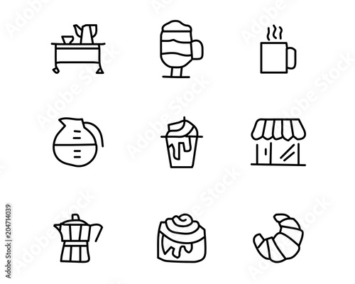 coffee and bread icon set design illustration, hand drawn style design, designed web and app
