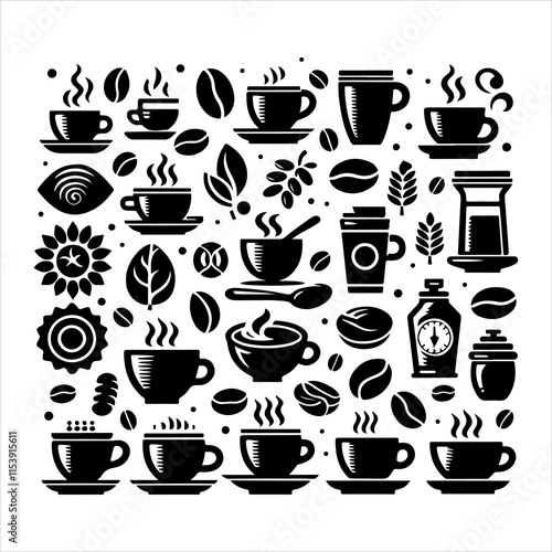 Coffee cup and bean silhouette vector. Coffee cup and bean icons silhouette illustration