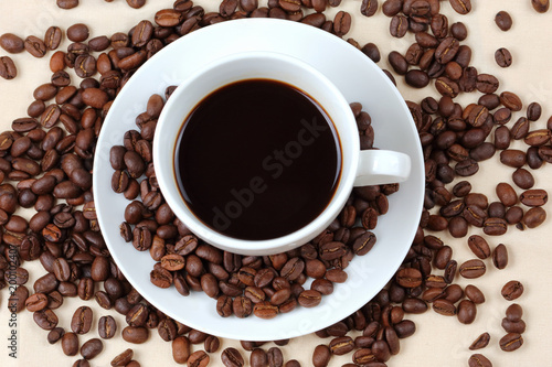 Coffee cup and coffee beans