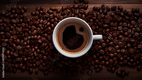 Coffee Cup and Roasted Coffee Beans, Coffee Background.