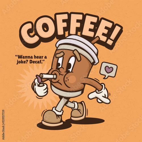Coffee Cup Trendy Retro Cartoon Vector Hand Drawn