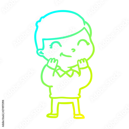 cold gradient line drawing cartoon boy smiling