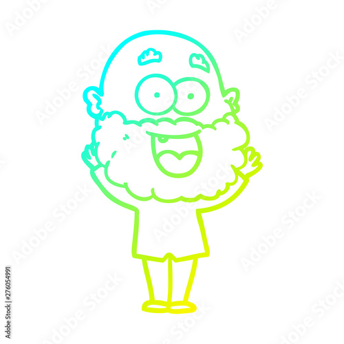 cold gradient line drawing cartoon crazy happy man with beard