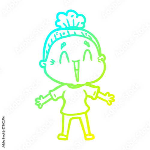 cold gradient line drawing cartoon happy old lady