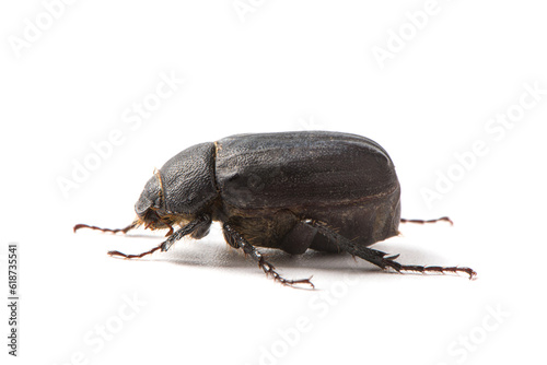 Coleoptera black scarabaeidae beetle isolated white background
