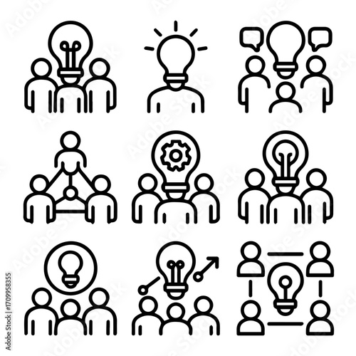 Collaborative Idea Generation Icons Teamwork and Innovation Symbols.