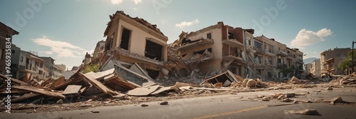 Collapsed buildings and debris after an earthquake