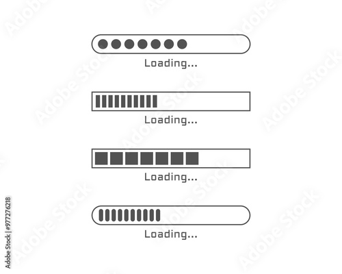 Collection Loading bar status icon. Vector illustration. Set of vector loaded icons. Download progress. Donload or Upload.