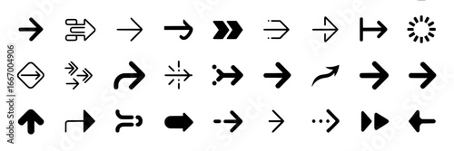 Collection of 27 Unique Black Arrow Icons: Navigation, Direction, and UI Elements