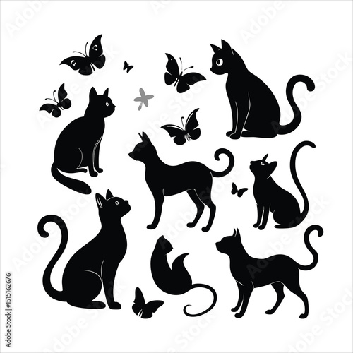 Collection of Cats Silhouettes in Various Styles Vector Art