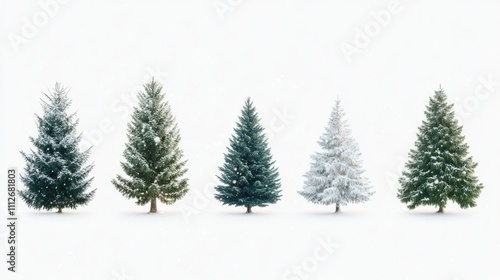 Collection of christmas Trees with Snow on white background