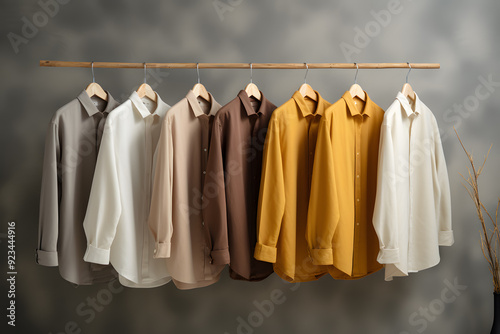 Collection of clothes hanging on rack