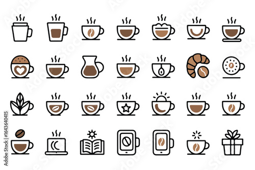 Collection of coffee and tea cup icons set in modern style