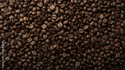 collection of coffee beans on a dark background, with a sharp close up of the coffee beans