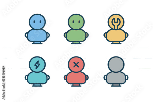 Collection of colorful icons representing different user statuses and actions in a modern digital interface