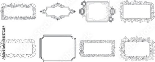 Collection of decorative frame designs with floral and geometric elements isolated on transparent background