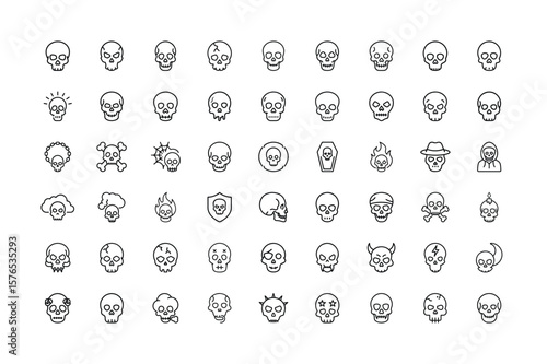 Collection of Forty Different Skull Icons with Various Styles and Accessories