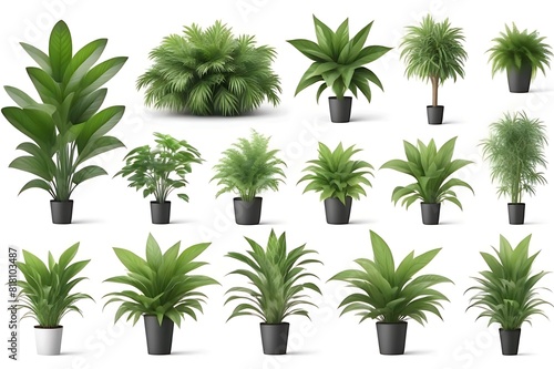 collection of green plants isolated on white background.