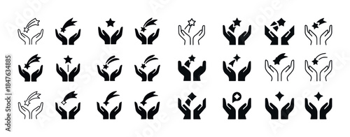 Collection of hand and star icons: gesture, interaction, magic,