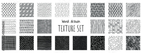 Collection of hand drawn black and white seamless textures. Vector illustration for textured paper, wrapping print, fabric, wallpaper, etc.